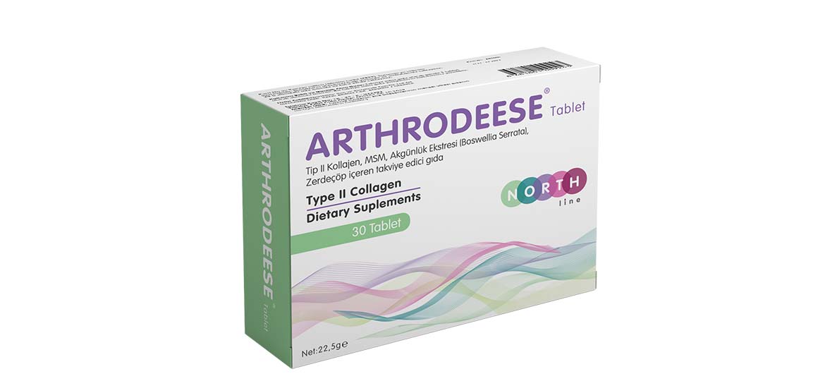 Metil sülfonil metan Hacim artırıcı: Mikro kristalin selüloz Laktoz monohidrat Akgünlük ektresi(Boswellia serrata) TipII kolajen Zerdeçöp kökü curcuma longa (c.domestica) Parlatıcı : polivinil pirolidon Topaklanmayı önleyici (Yağ asitlerinin magnezyum tuzları ve silikon dioksit) içerir.